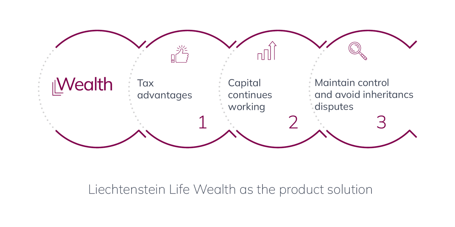 Well-positioned individuals who are specifically planning their estateEstate arrangements are handled in a relevant and personalised manner by Liechtenstein Life Wealth. The product excels by personally taking into account the wishes of the testator, ensuring that the inheritance yields a positive outcome.