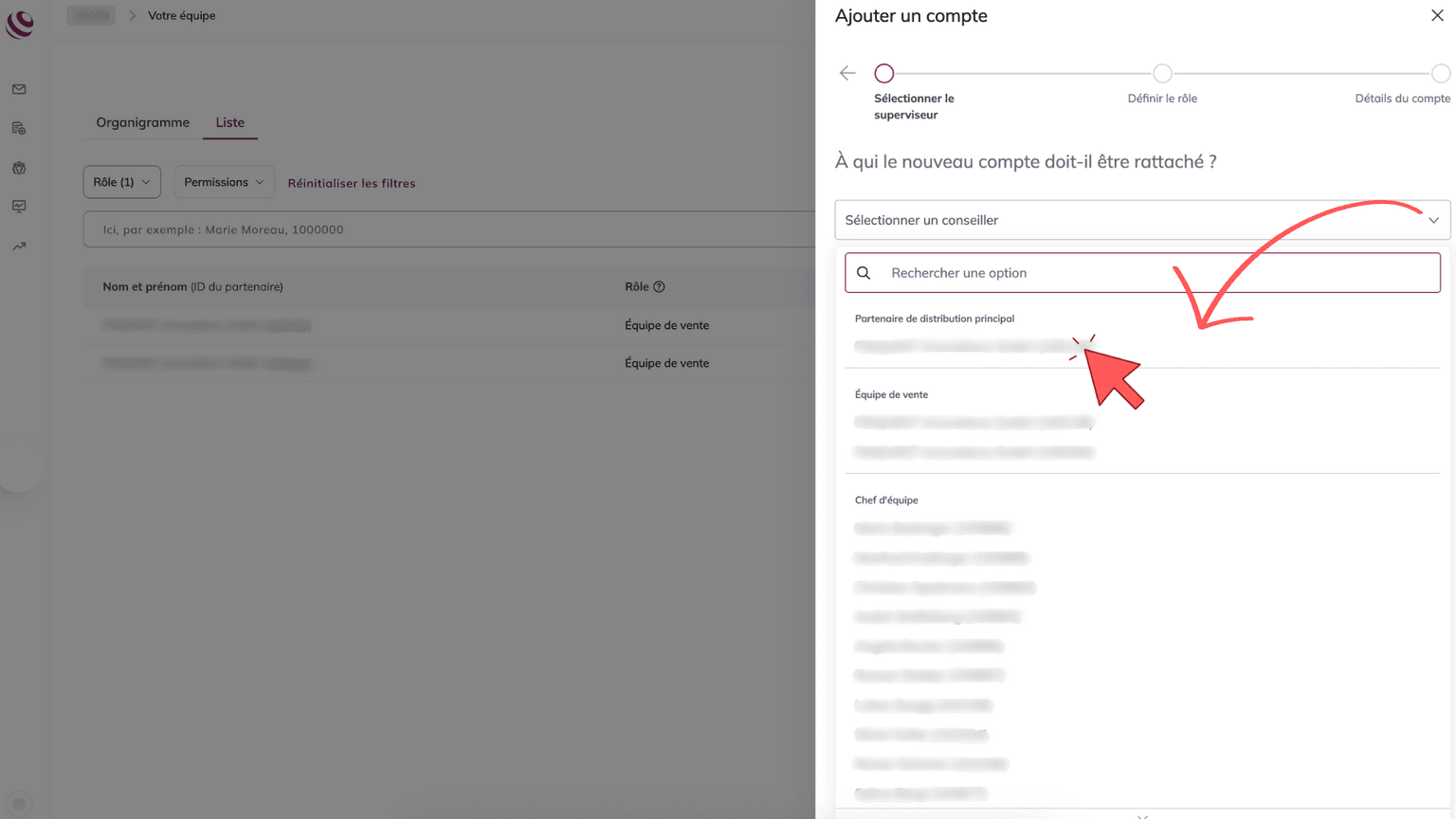 Sélectionnez la personne à laquelle le ou la nouvel·le utilisateur·rice sera rattaché·e.